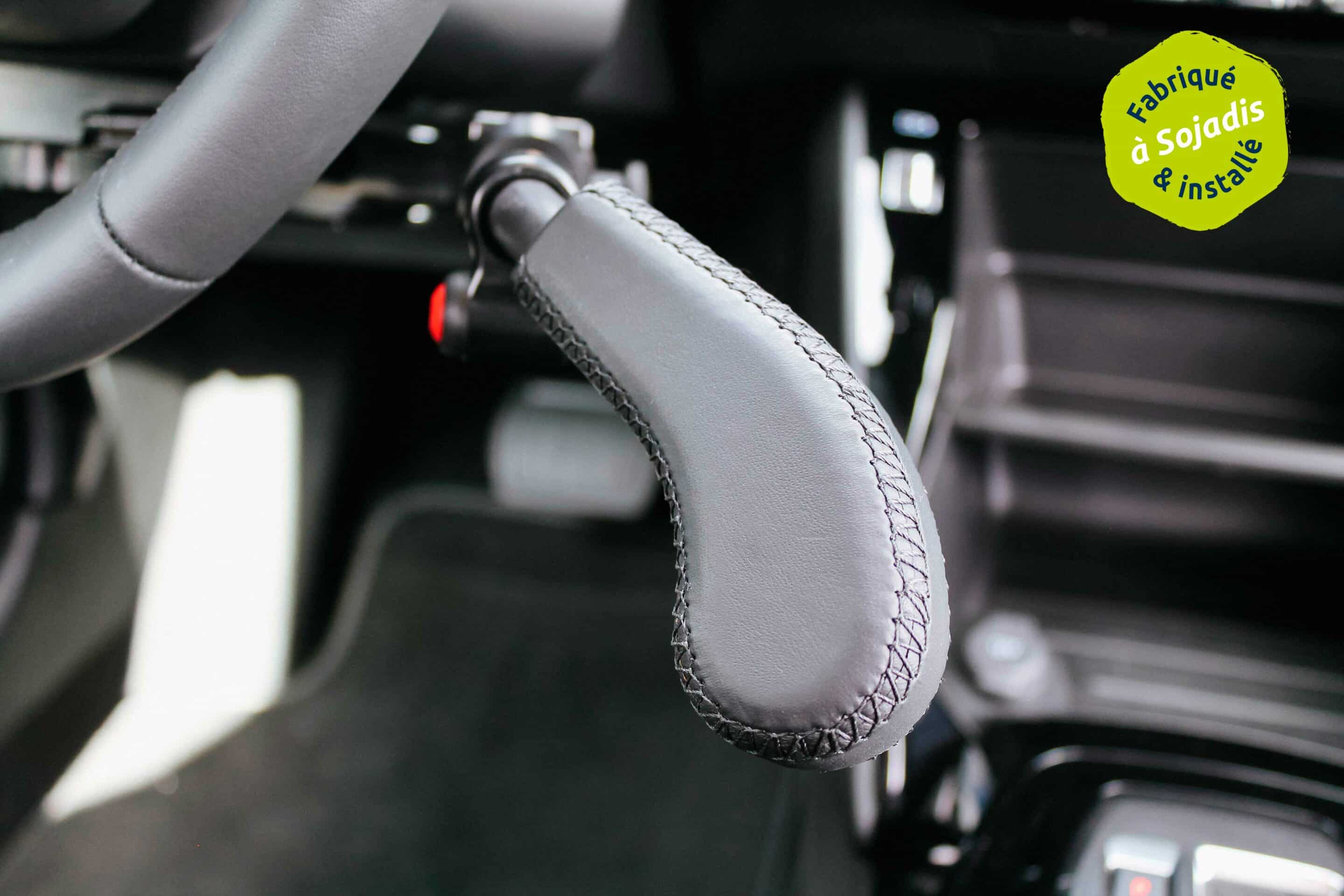 Control todo en uno, situado a la derecha o a la izquierda del volante: aceleración por rotación, frenado por empuje horizontal y 7 funciones en el mini teclado (luces, intermitentes, limpiaparabrisas).